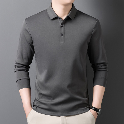 秋冬季新款韩版商务休闲长袖T恤男士时尚百搭中年翻领宽松上衣潮