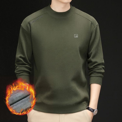 秋冬新款加绒加厚卫衣男士保暖长袖T恤男简约休闲内搭打底衫男装