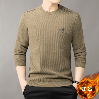 秋冬男士圆领羊毛衫加厚宽松打底衫商务休闲提花纯毛针织毛衣