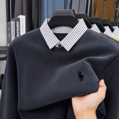 高品质含绵羊毛男士卫衣假两件秋冬420克加厚保暖奥粒绒打底衫男
