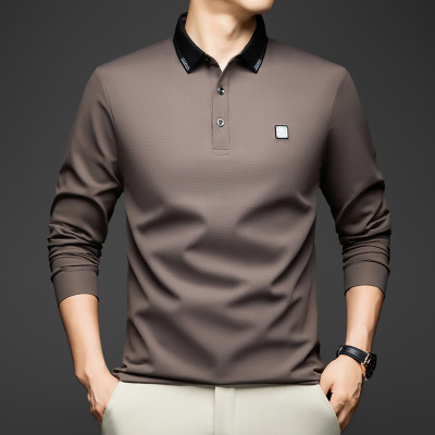 秋新款男士T恤衫 免烫翻领休闲男上衣男长袖