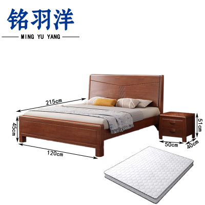 铭羽洋实木床120*215*45cm+1床头柜+5cm床垫套