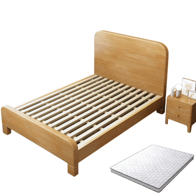 筑亮 家用床 150*200*88cm原木色+床头柜 套