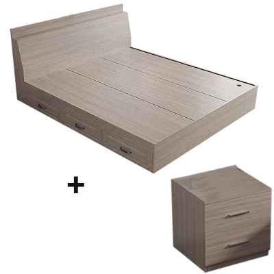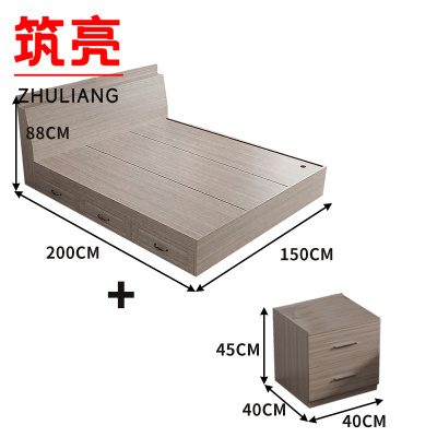 筑亮 板式床 150*200*88cm浅橡木色带抽款+床头柜 套