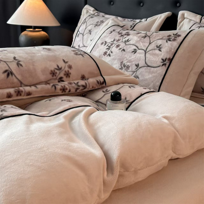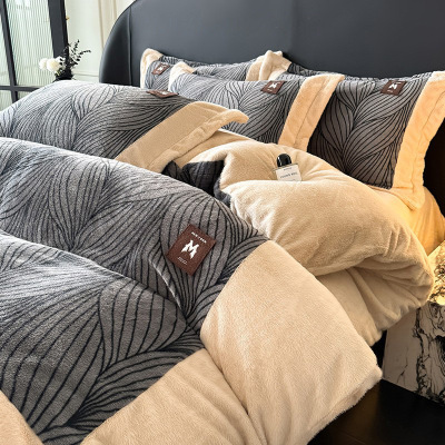 a类母婴级欧貂绒床上四件套加厚保暖牛奶绒被套珊瑚绒轻奢风床品