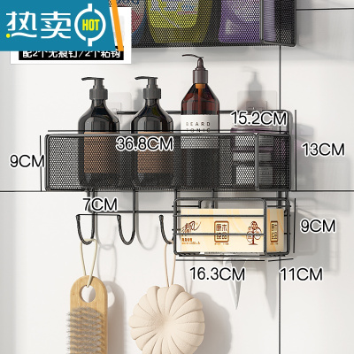 敬平卫生间纸巾盒厕所抽纸盒壁挂式卷纸架纸巾架放置洗手间纸筒免打孔 款式1黑色长款配纸巾架挂钩(配粘钩+无痕钉)