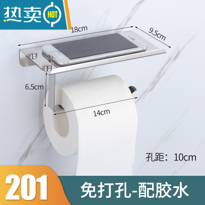 敬平卷纸架厕纸架卫生间酒店手纸架壁挂纸巾架免打孔擦手纸盒放手机架 201级不锈钢卷纸架(免打孔推荐纸巾盒