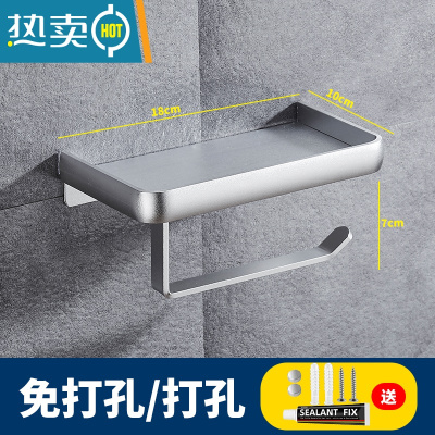 敬平厕所手机架厕纸架纸巾架卫生间浴室卷纸筒置物架铝免打孔纸纸巾盒 B款—珠光银围边+卷纸架浴室置物架