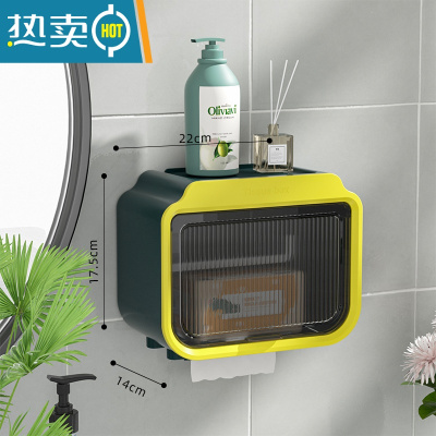 敬平卫生间壁挂式纸巾盒防水免打孔厕所浴室置物架防水厕所卷纸架轻奢 单层-柠檬黄[顶部置物+透明可视]