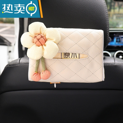 敬平车载纸巾盒挂式创意可爱花朵汽车内抽纸盒扶手箱车用餐巾纸盒女生 蒲公英-白色纸巾盒(送清风纸巾一包)