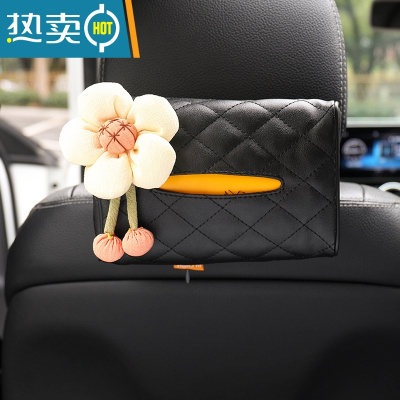 敬平车载纸巾盒挂式创意可爱花朵汽车内抽纸盒扶手箱车用餐巾纸盒女生 蒲公英-黑色纸巾盒(送清风纸巾一包)