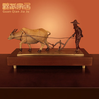 《春耕丰收》铜牛耕牛摆件玄关电视柜家居饰品办公室桌面工艺礼品