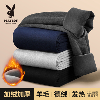 花花公子男士保暖裤德绒加绒加厚打底棉裤羊毛裤绒裤秋裤男款冬季
