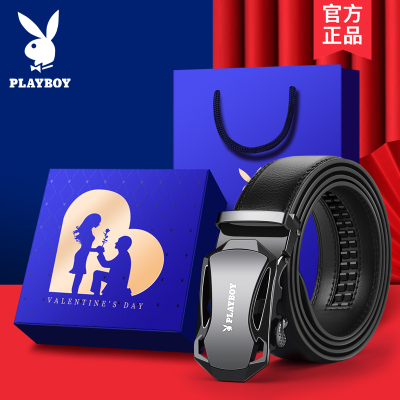 花花公子男士皮带真皮正品高档自动扣礼盒本命年红腰带年轻人裤带