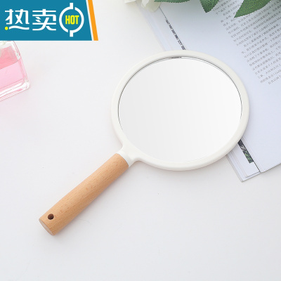敬平榉木双面手柄镜美容院便携纹绣专用木制复古化妆镜圆形手拿镜子女 单面榉木圆白色便携式用镜