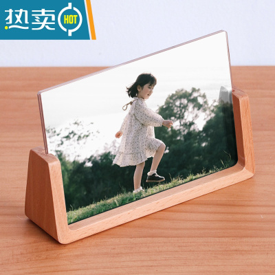 敬平现代简约胡桃木榉木相框摆台照片678寸亚克力实木透明框架像架子 榉木-竖版 6寸[内径10.2*15.2cm]