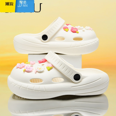 聚范洞洞鞋女款外穿踩屎感缓震软底外穿棉花回弹舒适增高厚底沙滩拖鞋