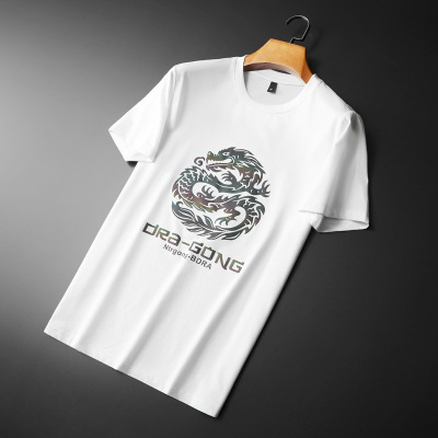 龙年短袖T恤男潮牌男装修身圆领体恤炫彩变色龙图本命年划龙舟服