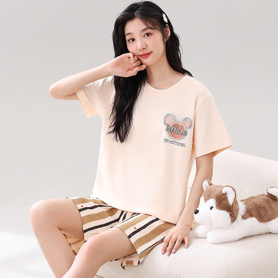 睡衣女士夏季纯棉韩版卡通短袖全棉可爱休闲短裤家居服套装可外穿