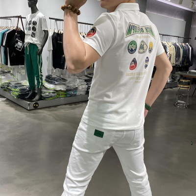 年男生翻领体恤T恤青年薄款徽章刺绣学院风短袖POLO衫ins夏季