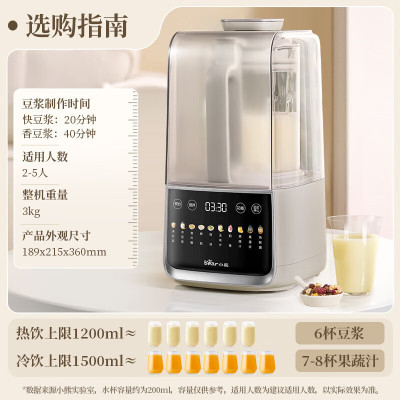 小熊(Bear)低音降噪破壁机 1.5L家用豆浆机预约多功能全自动米糊机 五谷杂粮料理机榨汁机 PBJ-F10M2
