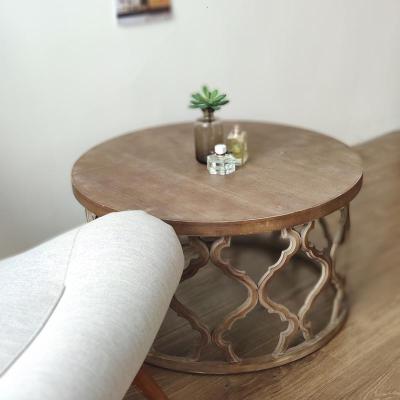 森美人美式乡村客厅圆形大茶几 做旧原木色镂空茶几边几 多款