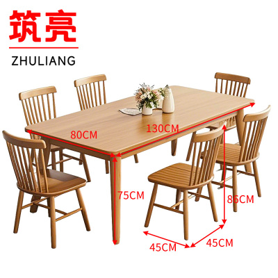 筑亮 餐桌椅 130*80cm+6木椅 套