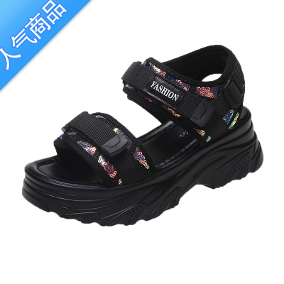SUNTEK厚底凉鞋女2023年夏季新款松糕软底运动休闲增高小码高跟时尚外穿