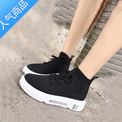 SUNTEK弹力袜子鞋女2023春夏新款轻便百搭高帮休闲鞋飞织透气运动小白鞋