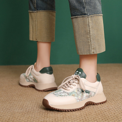 头层牛皮厚底老爹鞋女春夏新款舒适透气圆头系带运动休闲鞋