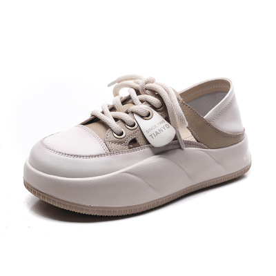牛皮复古单鞋女真皮踩脚两穿厚底板鞋春季新款软底运动休闲鞋