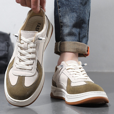 真皮男鞋2025春季新款韩潮流百搭复古板鞋子厚白底运动休闲鞋子男