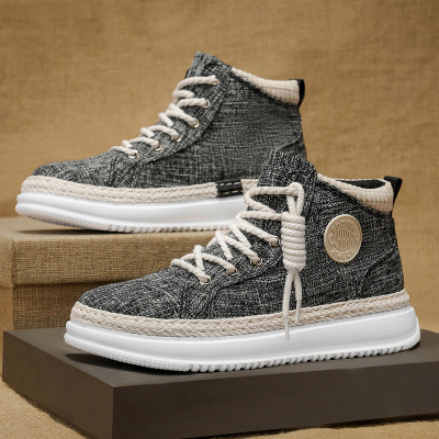 新款透气帆布滑板鞋高帮厚底增高运动风休闲鞋秋冬季男鞋学生