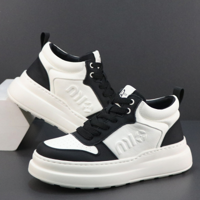 高帮鞋子男潮鞋厚底轻便休闲鞋新款秋冬百搭真皮透气运动板鞋