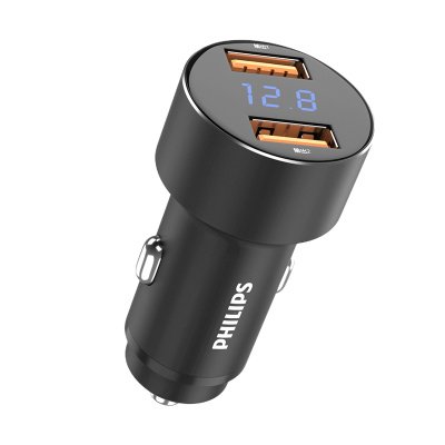 飞利浦车载充电器双口QC3.0 PD快充一拖二苹果12汽车点烟器转换插头闪充45W大功率车充