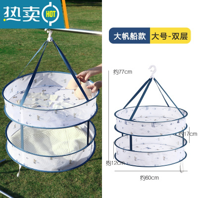 敬平晒衣篮晾衣网晾晒网衣服平铺的网兜 家用晾袜子毛衣防变形晾衣架 双层大帆船款