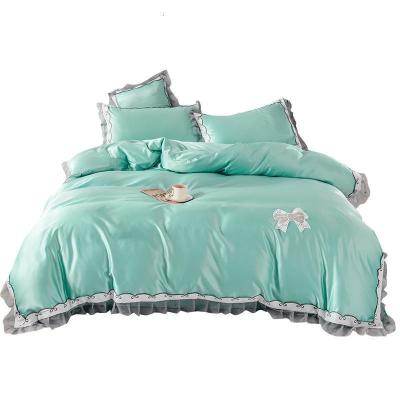 公主风四件套北欧风水洗真丝被套床笠床单三件套冰丝床上用品