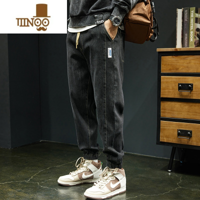 YANXU松紧腰牛仔裤男潮牌日系宽松大码束脚裤夏季薄款休闲小脚哈伦长裤