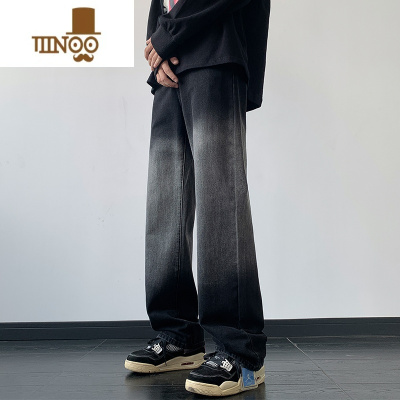YANXU水洗撞色渐变牛仔裤男款直筒宽松高街复古潮牌青少年美式秋季裤子