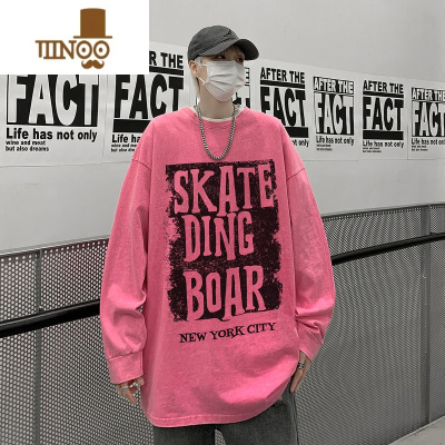 YANXU水洗做旧长袖t恤男秋季2023新款美式复古潮牌印花卫衣打底衫
