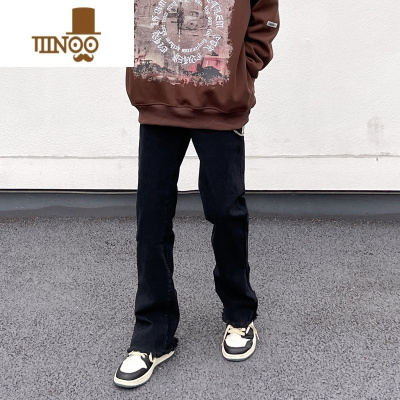 YANXU非潮勿近高街美式黑色牛仔裤男宽松微喇设计感显瘦毛边vibe长裤子