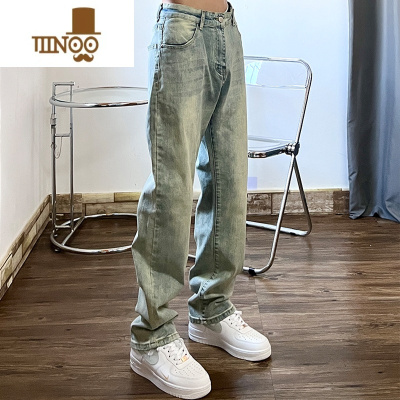 YANXU欧美vibe风高街水洗黄泥染牛仔裤男美式ins百搭复古直筒裤