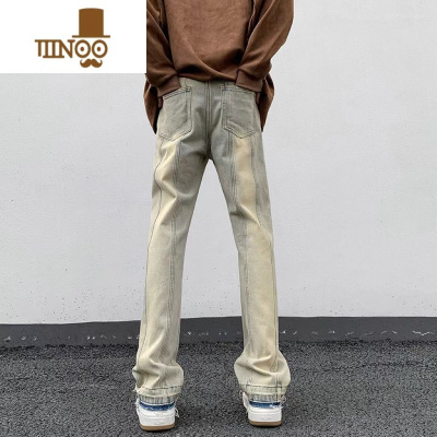 YANXU美式vibe风裤子高街水洗黄泥染牛仔裤男款微喇修身窄版工装直筒裤