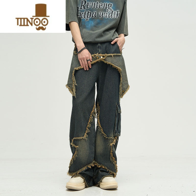 YANXU美式高街牛仔裤男设计感港风复古宽松直筒休闲垂感阔腿长裤
