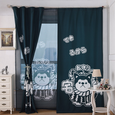 日式风水帘素雅窗帘镇宅半遮光定制成品窗帘秋田犬