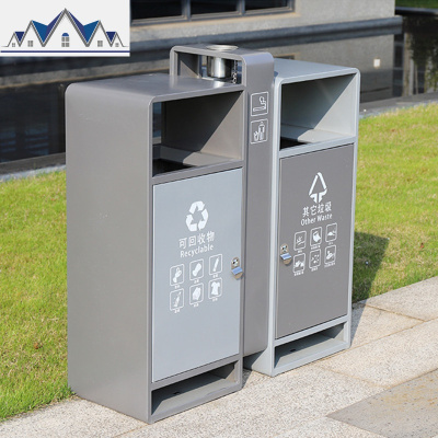 创世人 办公家具不锈钢垃圾桶方管物业小区垃圾桶带烟灰桶商用垃圾桶