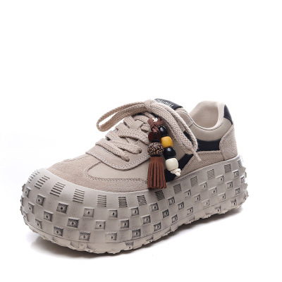 头层牛皮秋冬新款透气百搭阿甘鞋运动休闲鞋厚底老爹鞋德训鞋