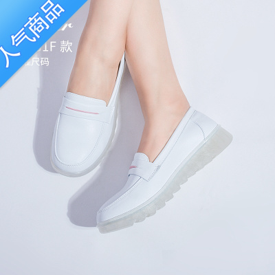 SUNTEK牌女平底白色护士鞋松紧带防滑工作鞋舒适女士小白鞋