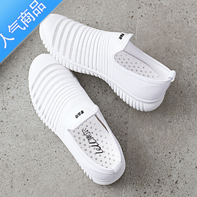 SUNTEK网面透气小白鞋女2023新款夏季薄款一脚蹬单鞋软底休闲板鞋网鞋女