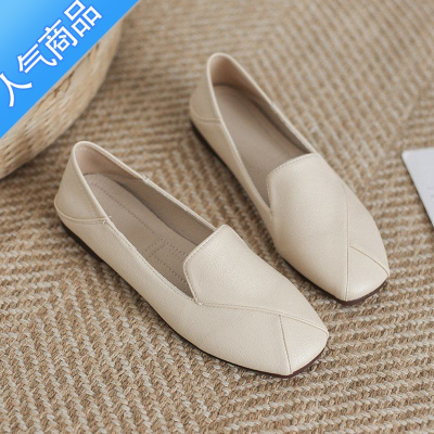SUNTEK牛津软底真软皮单鞋女平底懒人鞋一脚蹬乐福鞋黑色工作鞋小皮鞋子